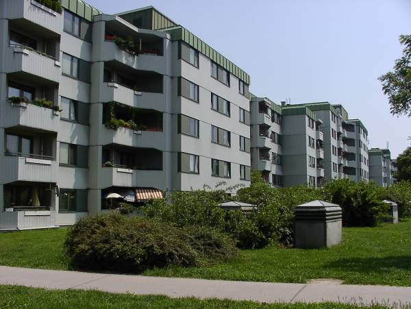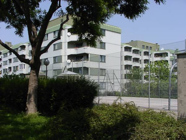 Die Anlage mit ca. 460 WE orientiert sich an Beispielen aus der Zwischenkriegszeit. Ruhige Höfe, Abschirmung des Verkehrs entlang der Hauptstrasse, Stiegen und Aufzüge in den unbelichteten Ecken.